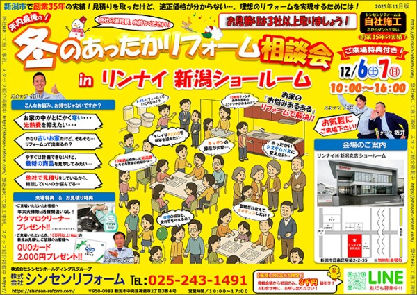 『冬のあったかリフォーム相談会 in リンナイ新潟ショールーム』開催のお知らせです。