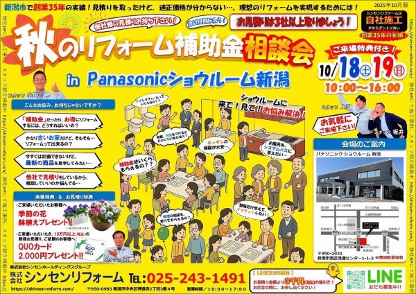 10月18日(土)・19(日)の2日間、「Panasonicショウルーム新潟」にて開催いたします。